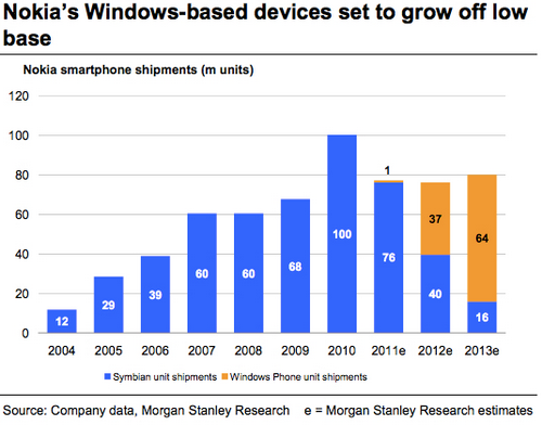 В 2011 году Nokia взяла курс на Windows Phone и в 2012 году он, вполне возможно, принесет первые плоды. Как считают аналитики Morgan Stanley, в этом году финская компания продаст 37 млн телефонов, работающих под управлением ОС Microsoft, а в 2013 году их число вырастет до 64 млн. На данный момент в каталоге Nokia присутствует три модели – Lumia 710, Lumia 800 и Lumia 900. Первые две вышли в прошлом году, а анонс Lumia 900 состоялся несколько дней назад на американской выставке CES 2012.